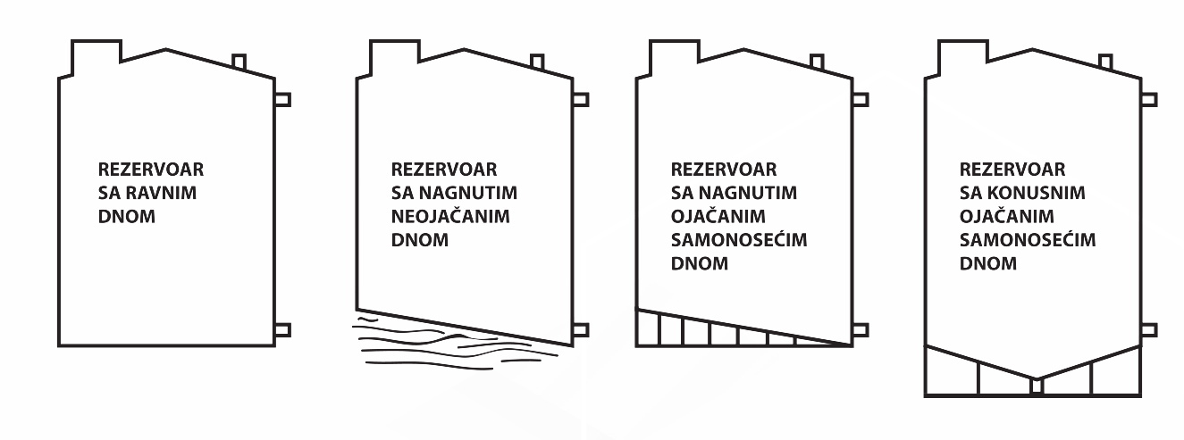 Dno: Ojačano dno, koje može biti konusno ili ravno, u zavisnosti od tipa rezervoara.