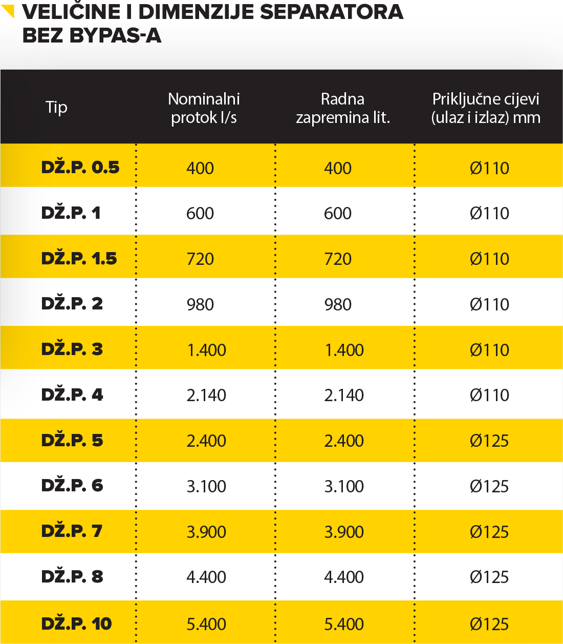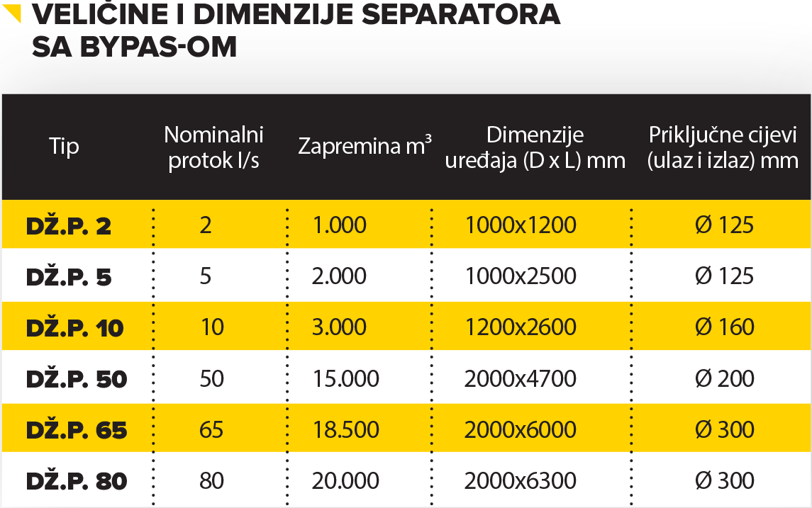Separatora kuhinjskih masti, separatora naftnih derivata i mineralnih ulja te separatore komunalnih voda.